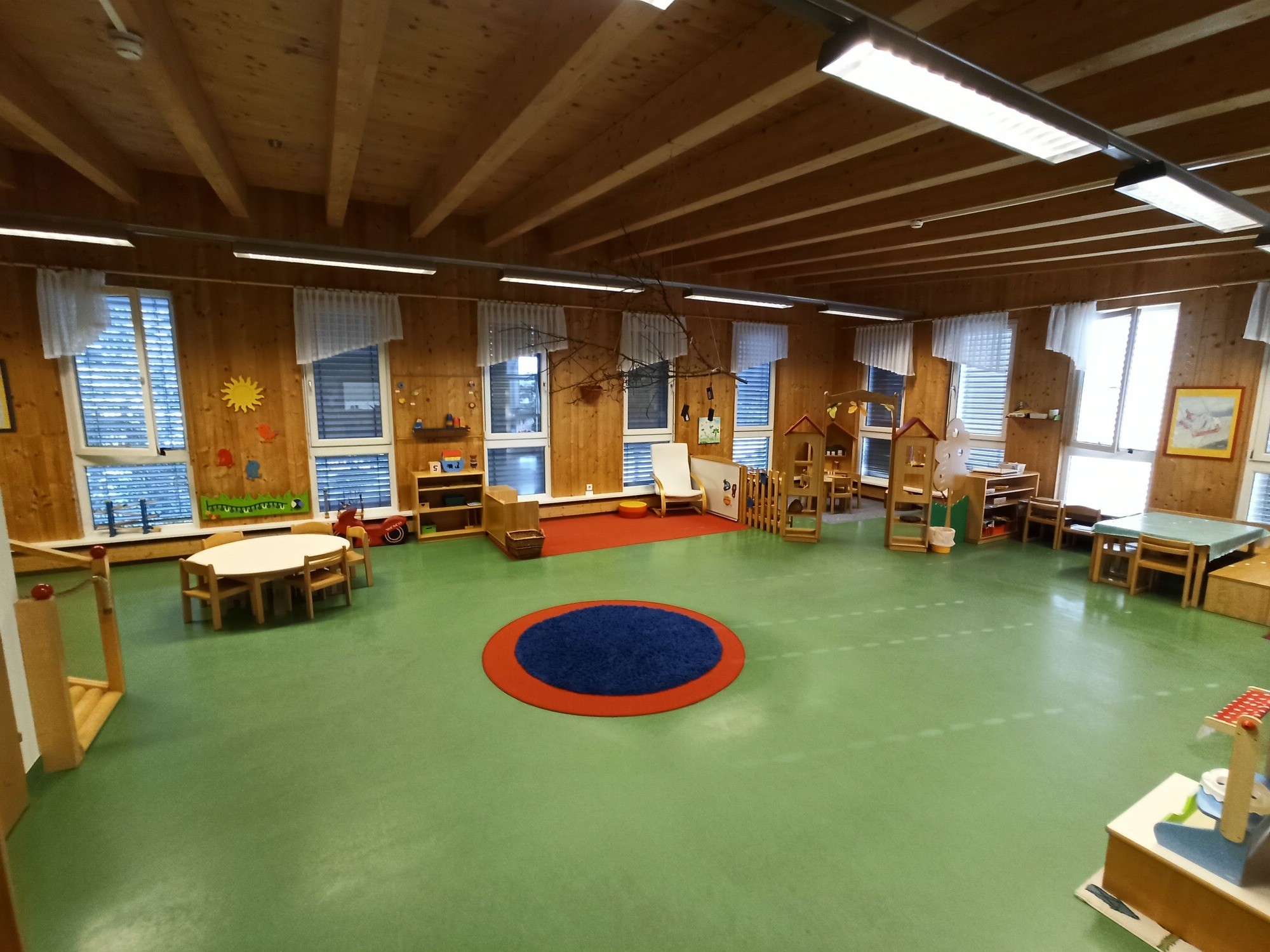 Das Foto zeigt die Kinderkrippe in Güssing, die ebenfalls von sommerlicher Überhitzung betroffen ist. Mit einer ausgeklügelten Nachtlüftung konnten wir Abhilfe schaffen.