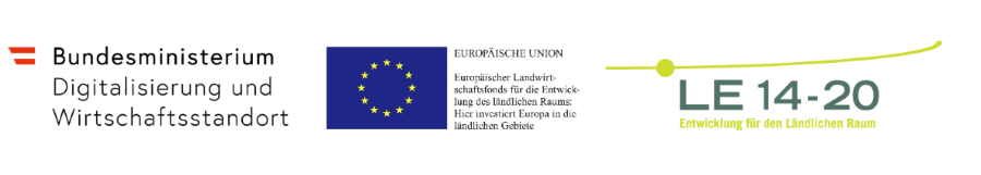 Dieses Projekt wird aus Mitteln des „BUNDESMINISTERIUMS für Digitalisierung und Wirtschaftsstandort“ sowie des „Europäischen Landwirtschafsfonds für die Entwicklung ländlichen Raums“ gefördert und im Rahmen des Programms „Subventionen zur Förderung der Wettbewerbsfähigkeit von kleinen und mittleren Unternehmen“ durchgeführt.